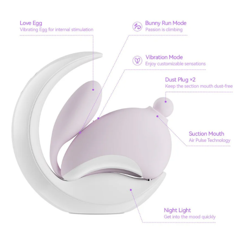 Rediscover your bliss with Bunnymoon—a whimsical blend of charm, functionality, and indulgence. This irresistibly cute bedside companion is more than just a pretty face, delivering dual-action delight with powerful internal and external sensations designed to leave you glowing.